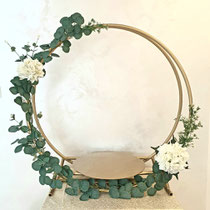 Künstliche Blumen (siehe Bild) kann ich auf Anfrage gerne anbringen. Besonders schön wird der Bogen jedoch, wenn euer Florist ihn passend zur restlichen Deko verschönert.